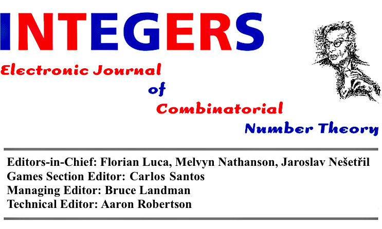 We welcome original research articles in combinatorics and number theory, with a preference for those that have a connection to both fields. Topics covered by the journal include additive number theory, multiplicative number theory, sequences and sets, extremal combinatorics, Ramsey theory, elementary number theory, classical combinatorial problems, hypergraphs, and probabilistic number theory. Integers also houses a combinatorial games section. The principal subject areas, according to the 2020 Mathematics Subject Classification scheme, are: 05A, 05C55, 05C65, 05D, 11A, 11B, 11D, 11K, 11N, 11P, 11Y, and 91A46.