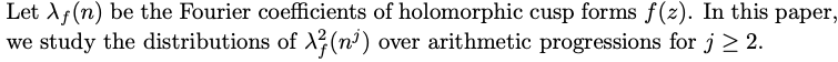 Distributions of Fourier Coefficients of Cusp Forms over Arithmetic Progressions