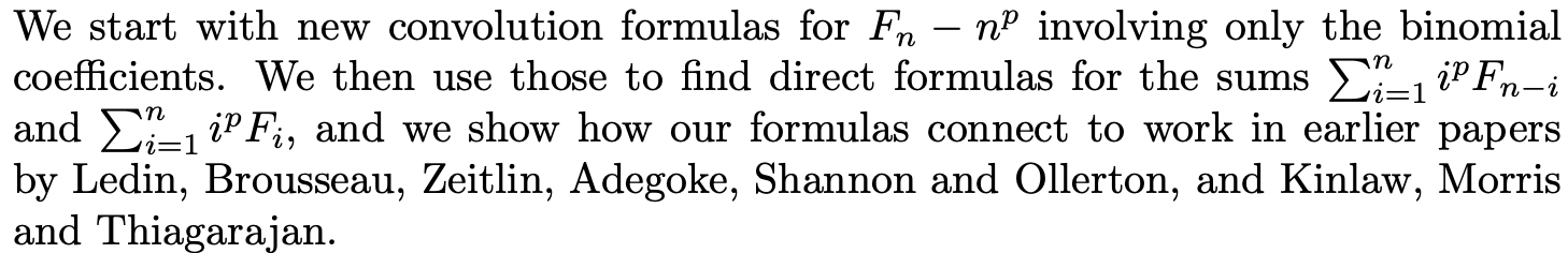 On the Brousseau Sums \(\sum_{i=1}^n i^p F_i\)