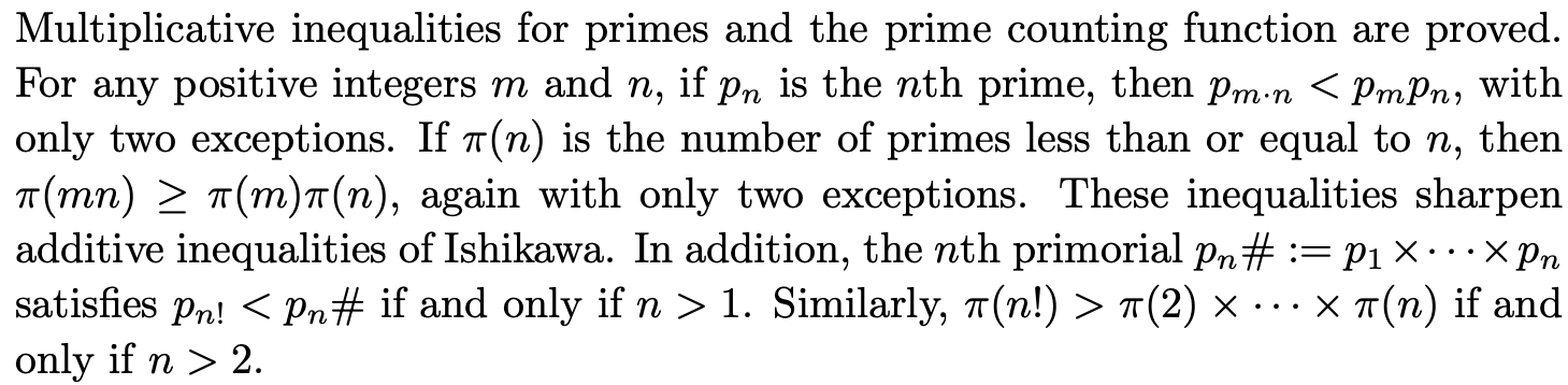 Multiplicative Inequalities for Primes and the Prime Counting Function