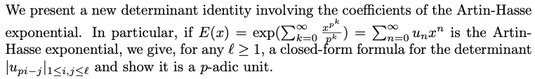 A Determinant of the Artin-Hasse Exponential Coefficients