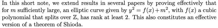 An Effective Version of a Theorem of Shioda on the Ranks of Elliptic Curves Given by \(y^2=f(x)+m^2\)