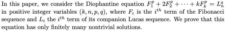 The Diophantine Equation \(\sum_{j=1}^{k}jF_j^p=L_n^q\)