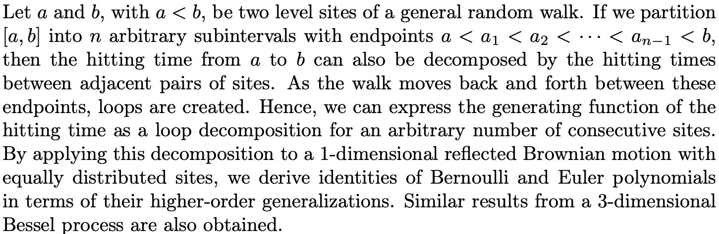 Loop Decompositions of Random Walks and Nontrivial Identities of Bernoulli and Euler Polynomials
