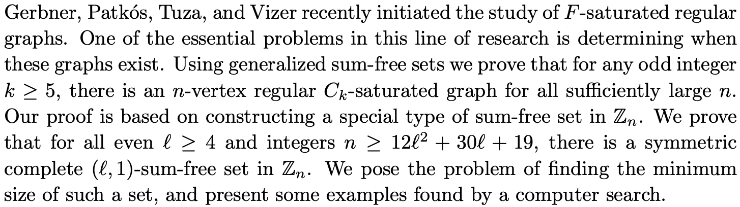 Generalized Sum-Free Sets and Cycle Saturated Regular Graphs