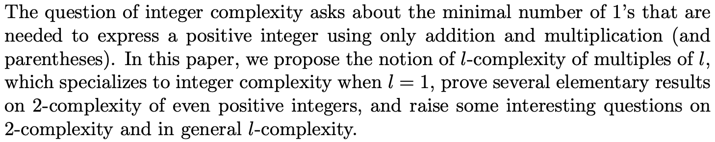 The 2-Complexity of Even Positive Integers