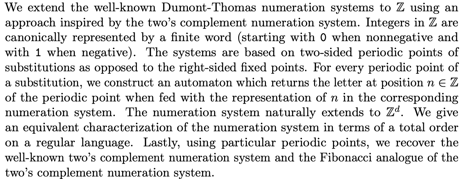Dumont-Thomas Complement Numeration Systems for \(\mathbb{Z}\)