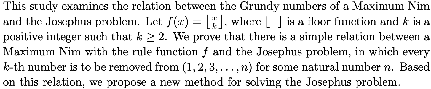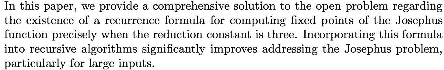 On the Recurrence Formula for Fixed Points of the Josephus Function