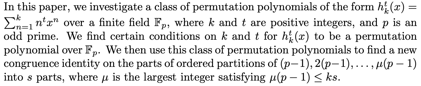 A Congruence Identity on Ordered Partitions Using Permutation Polynomials