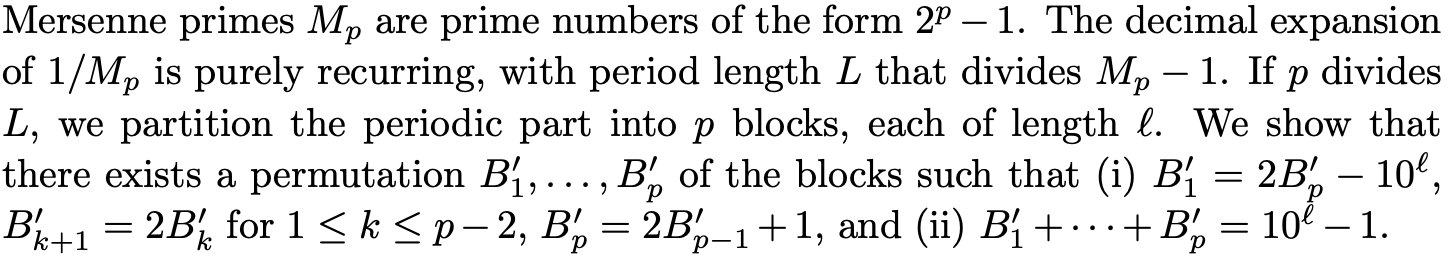 A Note on the Decimal Expansion of Reciprocals of Mersenne Primes