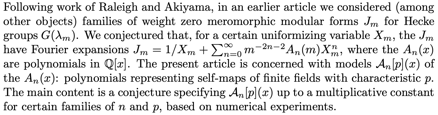 Finite Field Models of Polynomials Interpolating Fourier Coefficients of Modular Functions for Hecke Groups