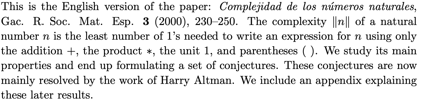 Complexity of Natural Numbers