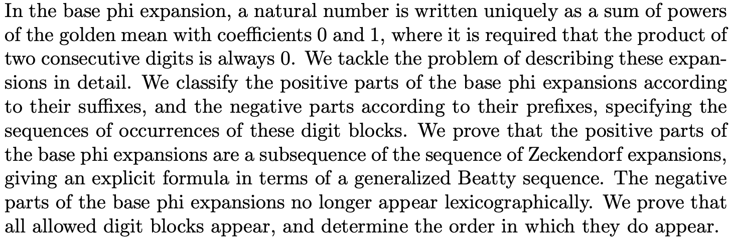 The Structure of Base Phi Expansions