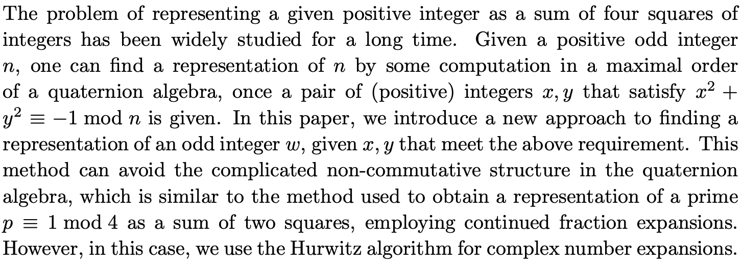 Finding Sums of Four Squares via Complex Continued Fractions