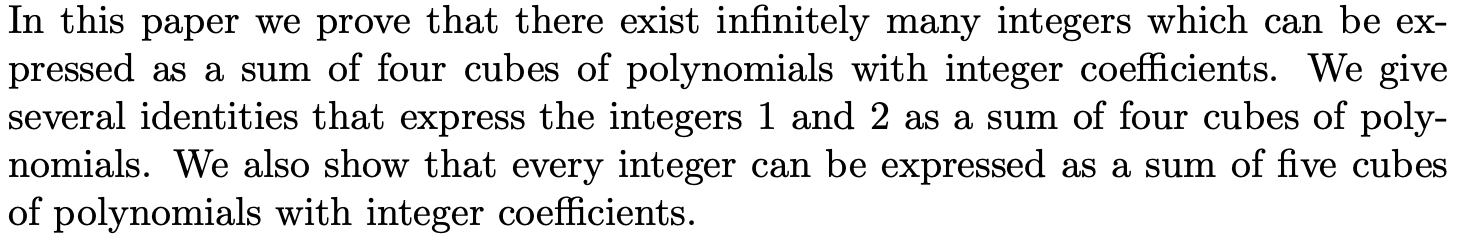 Expressing an Integer as a Sum of Cubes of Polynomials