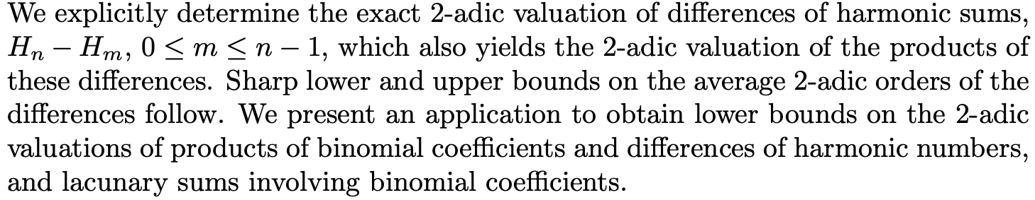 On the 2-Adic Valuation of Differences of Harmonic Numbers