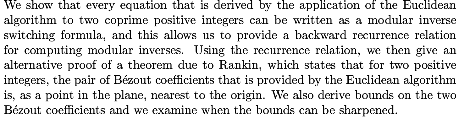 The Euclidean Algorithm as a Sequence of Modular Inverse Switching Formulas