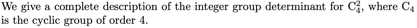 Integer Group Determinants for \(\mathrm{C}_{4}^{2}\)