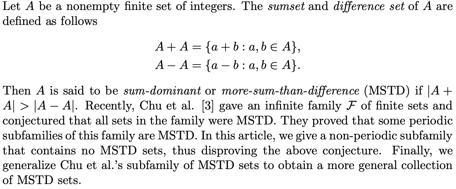 A Conjecture of Chu et al. and a New Family of MSTD Sets
