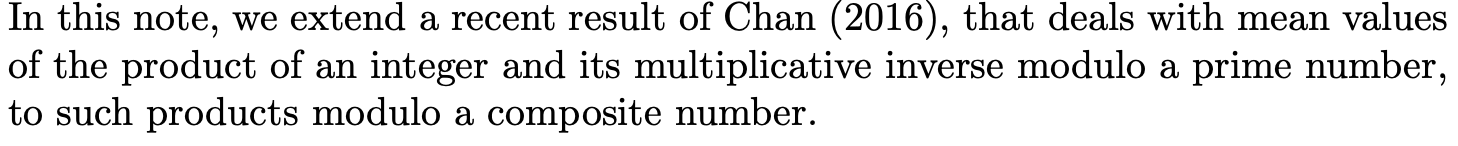 Mean Values of the Product of an Integer and Its Modular Inverse