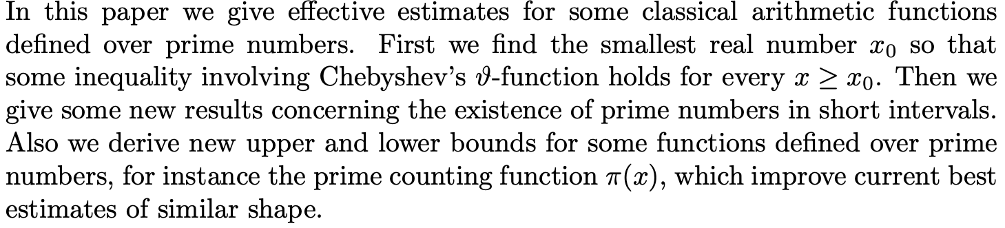 Effective Estimates for Some Functions Defined over Primes