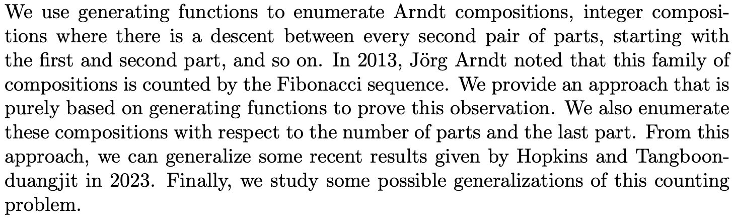 Arndt Compositions: A Generating Functions Approach