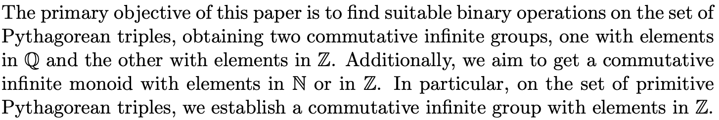 Groups and Monoid in the Set of Pythagorean Triples
