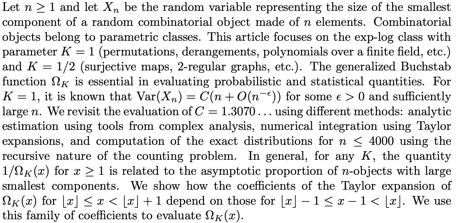 Evaluating the Generalized Buchstab Function and Revisiting the Variance of the Distribution of the Smallest Components of Combinatorial Objects