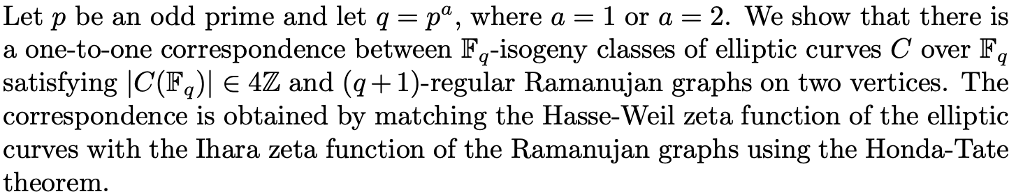 Elliptic Curves over Finite Fields and Ramanujan Graphs on Two Vertices