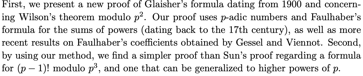 Wilson's Theorem Modulo \(p^2\) Derived from Faulhaber Polynomials
