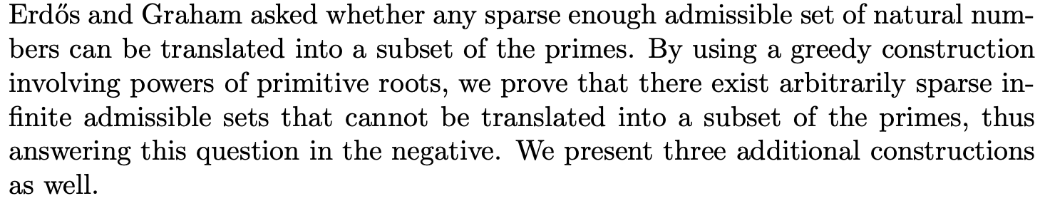 Sparse Admissible Sets and a Problem of Erdős and Graham