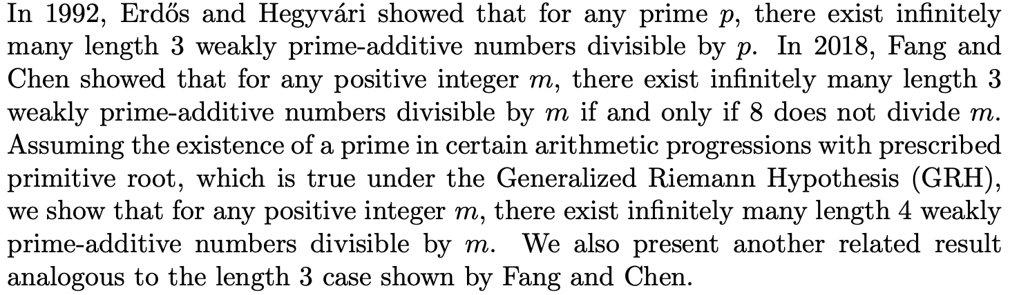 On the Weakly Prime-Additive Numbers with Length 4