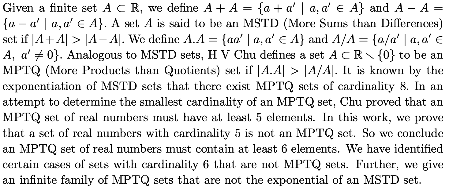 On The Minimum Cardinality of MPTQ Sets