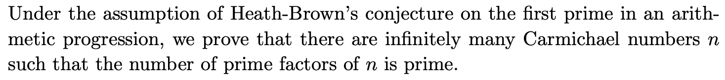 Carmichael Numbers with a Prime Number of Prime Factors