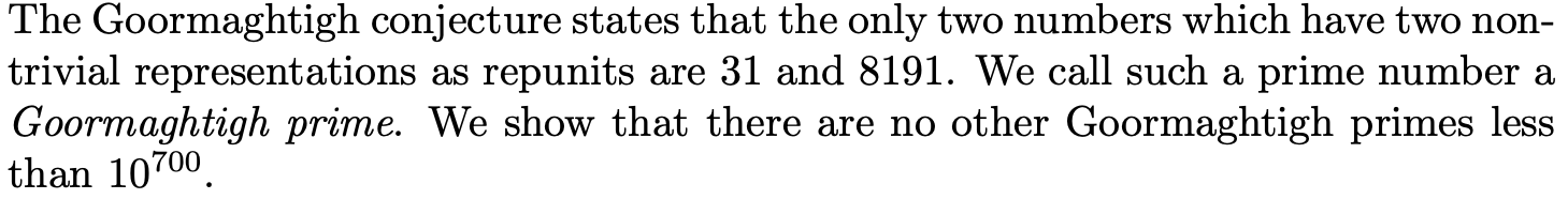No New Goormaghtigh Primes up to 10700
