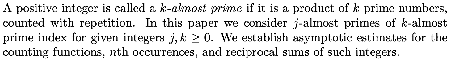 Almost Primes of Almost Prime Index
