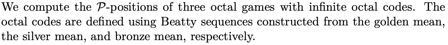 Olympic Games: Three Impartial Games with Infinite Octal Codes