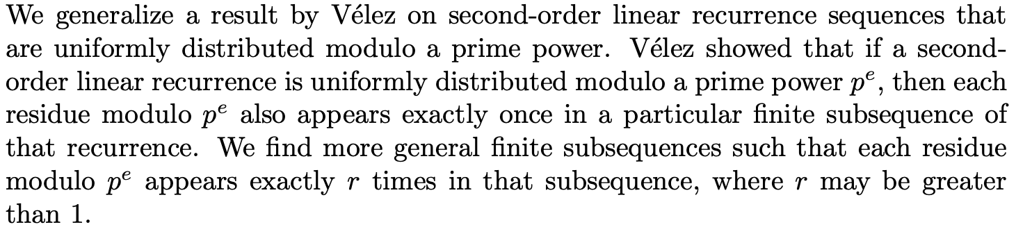 Generalization of a Theorem of Vélez on Uniform Distribution in Second-Order Linear Recurrences