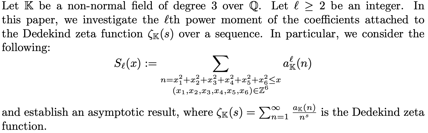 The Higher Power Moments of the Coefficients of the Dedekind Zeta Function over a Polynomial in Six Variables
