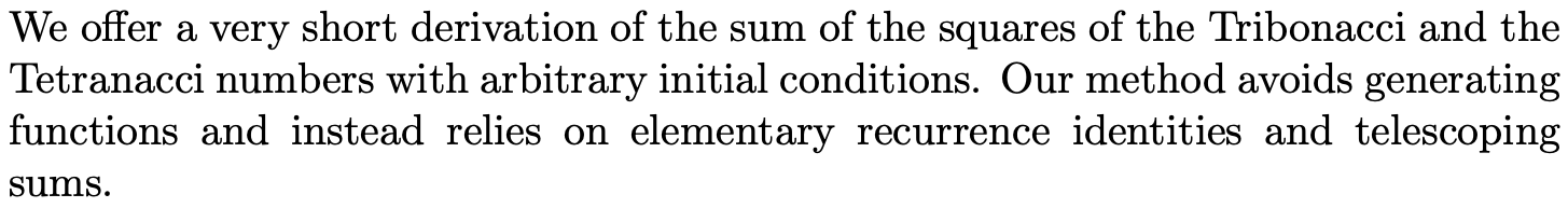 A Simple Proof of the Formula for the Sum of Tribonacci and Tetranacci Numbers Squared