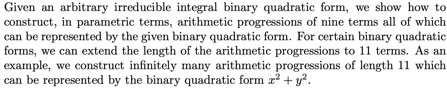Arithmetic Progressions Represented by Binary Quadratic Forms