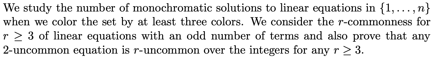 On Monochromatic Solutions of Linear Equations Using at Least Three Colors