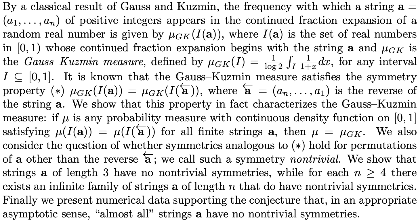 An Elementary Characterization of the Gauss-Kuzmin Measure in the Theory of Continued Fractions