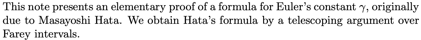 A Short Telescoping Proof of Hata's Formula for the Euler-Mascheroni Constant