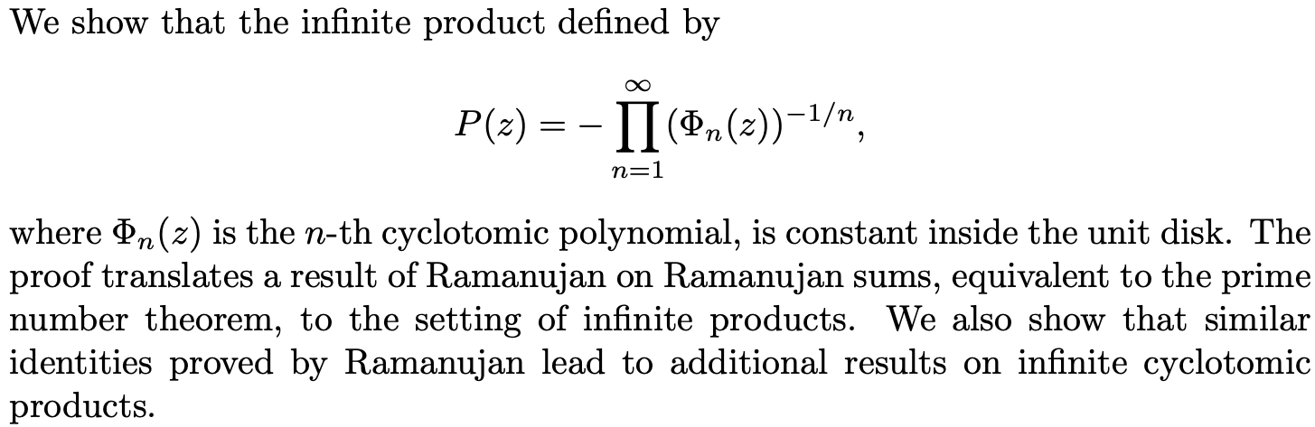 Constancy of an Infinite Cyclotomic Product via Ramanujan Sums