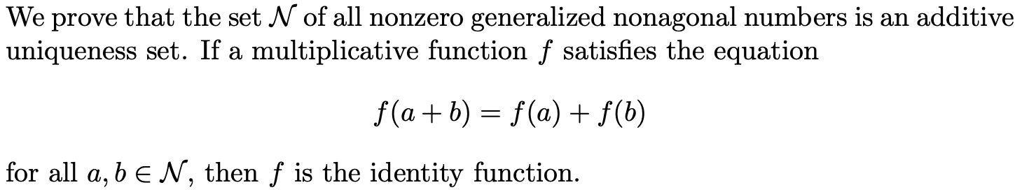 On the Additive Uniqueness of Generalized Nonagonal Numbers for Multiplicative Functions